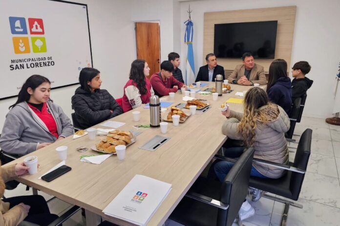 Este lunes en la Sala de Prensa municipal, el intendente Leonardo Raimundo y el secretario de Coordinación General, Alejandro Cabral, recibieron a alumnos de los colegios San Carlos y Cristiano Redentor que realizarán pasantías en la Municipalidad de San Lorenzo. La actividad forma parte de un programa de formación y orientación laboral a cargo de la administración pública local.