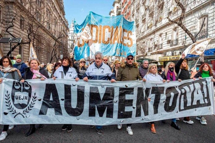 El paro se realizará bajo la consigna triple: “Por el salario, contra el traspaso y en defensa del sistema jubilatorio!”. La UEJN, denuncia un “ahogo” a los salarios judiciales y la constante amenaza a la independencia del Poder Judicial.”Llos motivos para mantener nuestro reclamo se multiplican”, aseguraron desde la UEJN.