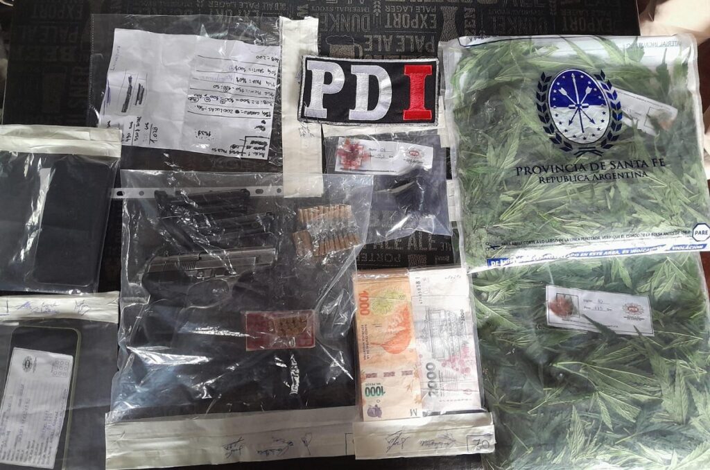 Durante una serie de allanamientos realizados por la PDI en Capitán Bermúdez y Granadero Baigorria se secuestró droga, un arma de fuego, municiones, vehículos, dinero en efectivo y celulares.