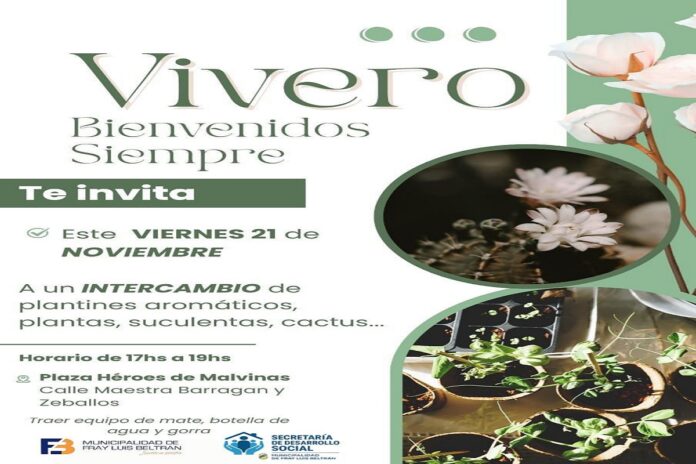 La Municipalidad de Fray Luis Beltrán, a través de la Secretaría de Desarrollo Social, invita a los vecinos y vecinas a participar este viernes 21 de noviembre de una nueva jornada de intercambio de plantines.