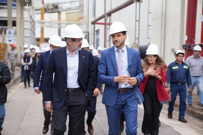 El presidente de Molinos Agro, Luis Perez Companc, llevó de paseo al gobernador Pullaro por toda la cerealera ubicada en el barrio 2 de Abril de la ciudad de San Lorenzo y lo invitó a cortar el listón de la inauguración de una ampliación en su línea de molienda de girasol.