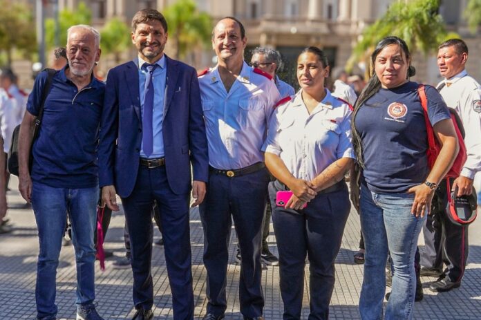 En un acto desarrollado esta mañana en Plaza 25 de Mayo de Santa Fe, el gobernador Maximiliano Pullaro encabezó la entrega de equipamiento a más de 35 delegaciones de bomberos de toda la provincia. “Es un orgullo de cada habitante de la provincia invencible de Santa Fe decir que tenemos a los bomberos voluntarios más preparados y más equipados de la República Argentina”, celebró el mandatario provincial.