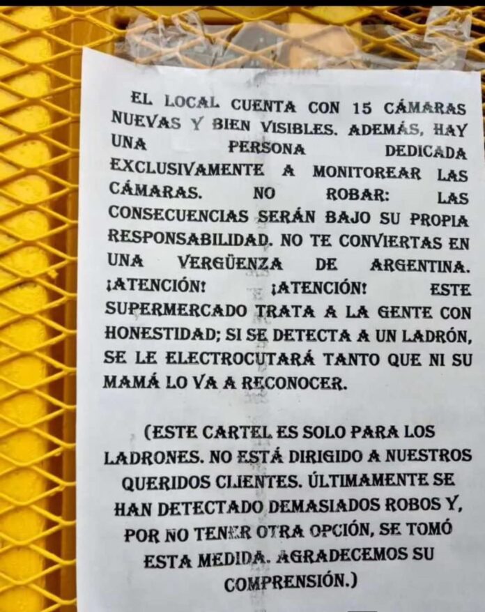 Un supermercado minorista de la localidad de Capitán Bermúdez anunció en la puerta de su establecimiento que “electrocutará” a quienes roben mercadería.