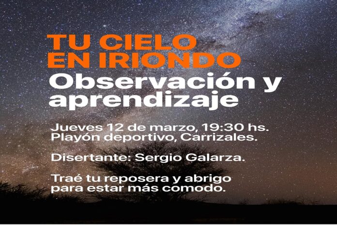 El próximo jueves 12 de marzo, a partir de las 19:30 h, el Playón Deportivo de Carrizales será el escenario de una nueva edición de “Tu Cielo en Iriondo”. Tras haber sido reprogramada por inclemencias climáticas, la jornada promete una experiencia única de conexión con el cosmos, guiada por el reconocido divulgador científico Sergio Carlos Galarza.