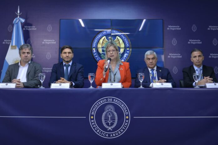 La ministra de Seguridad Nacional, Alejandra Monteoliva, junto al gobernador de Santa Fe, Maximiliano Pullaro, encabezaron una conferencia de prensa en la que brindaron detalles sobre la investigación de la masacre escolar ocurrida el pasado 30 de marzo en la localidad santafesina de San Cristóbal. Participaron del encuentro el ministro de Justicia y Seguridad de la provincia de Santa Fe, Pablo Cococcioni; el Jefe de la Policía Federal Argentina, Comisario General Luis Alejandro Rolle y el Comisario Inspector Guillermo Díaz, jefe del Departamento Unidad de Investigación Antiterrorista (DUIA) de la PFA.
